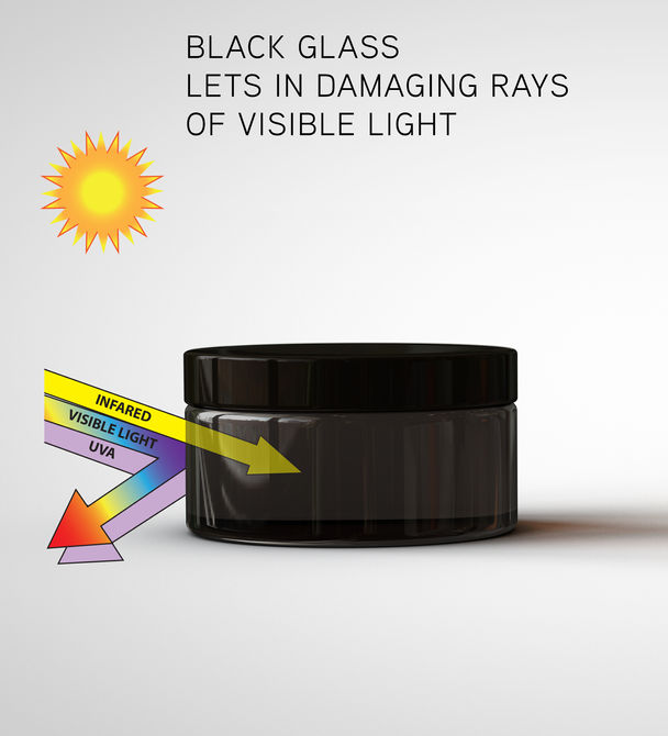Miron Violetglass is a unique, scientifically proven and patented biophotonic glass packaging specially made to house products like ours that are made using natural and organic ingredients. The special mix of minerals and unique properties in the glass protect our ingredients from the harmful effects of light while also enhancing and preserving the nutrients of the ingredients within our products. Compared to other glass types, aluminum or plastic packaging, tests prove that Miron Glass has often 3-4 times better storage quality increasing the shelf life. Click here to learn more about Miron Glass.